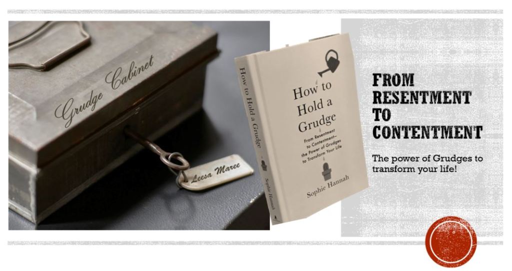 - Classify and grade your grudge out of 10 and place it in your “Grudge Cabinet” – gain perspective, recognise the power of the grudge, fold-it and put it away.